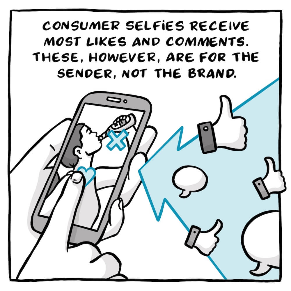 Hier findet Ihr beispielhaft drei der 2021 veröffentlichten 3-Panel Comics die untersuchen wie Brand Selfies eine Marke stärken können, was das Herstellen und Anbieten von Produkten mit denen macht, die dahinter stehen und welchen unterschied es für Werber macht, in welchem Kontext Ihre Werbeanzeigen geschaltet werden.