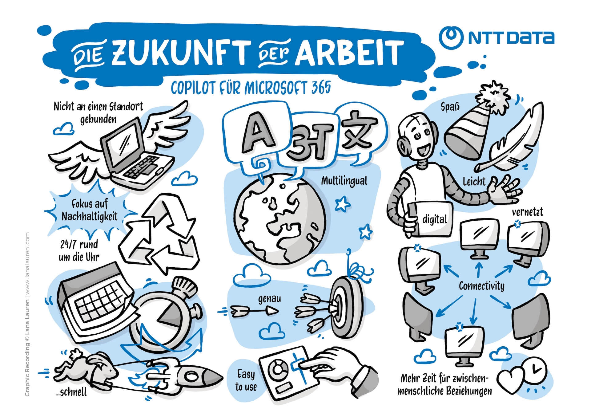 NTT Austria war als Silver Sponsor bei der MSFT Ignite in Wien mit dabei! Über 600 Teilnehmende erlebten in der ehrwürdigen Aula der Wissenschaften eine spannende Zeit. NTT Austria war auch mit einem Stand vor Ort und präsentierte Themen rund um Copilot für 365 in Teams Telefonie und Teams Rooms, einschließlich eines Vortrags von und MSFT – inklusive eines Co-Piloten-Kostüms auf der Bühne! L zudem live am Stand sowie während des Vortrags, um die Zukunft der Arbeit zu visualisieren.