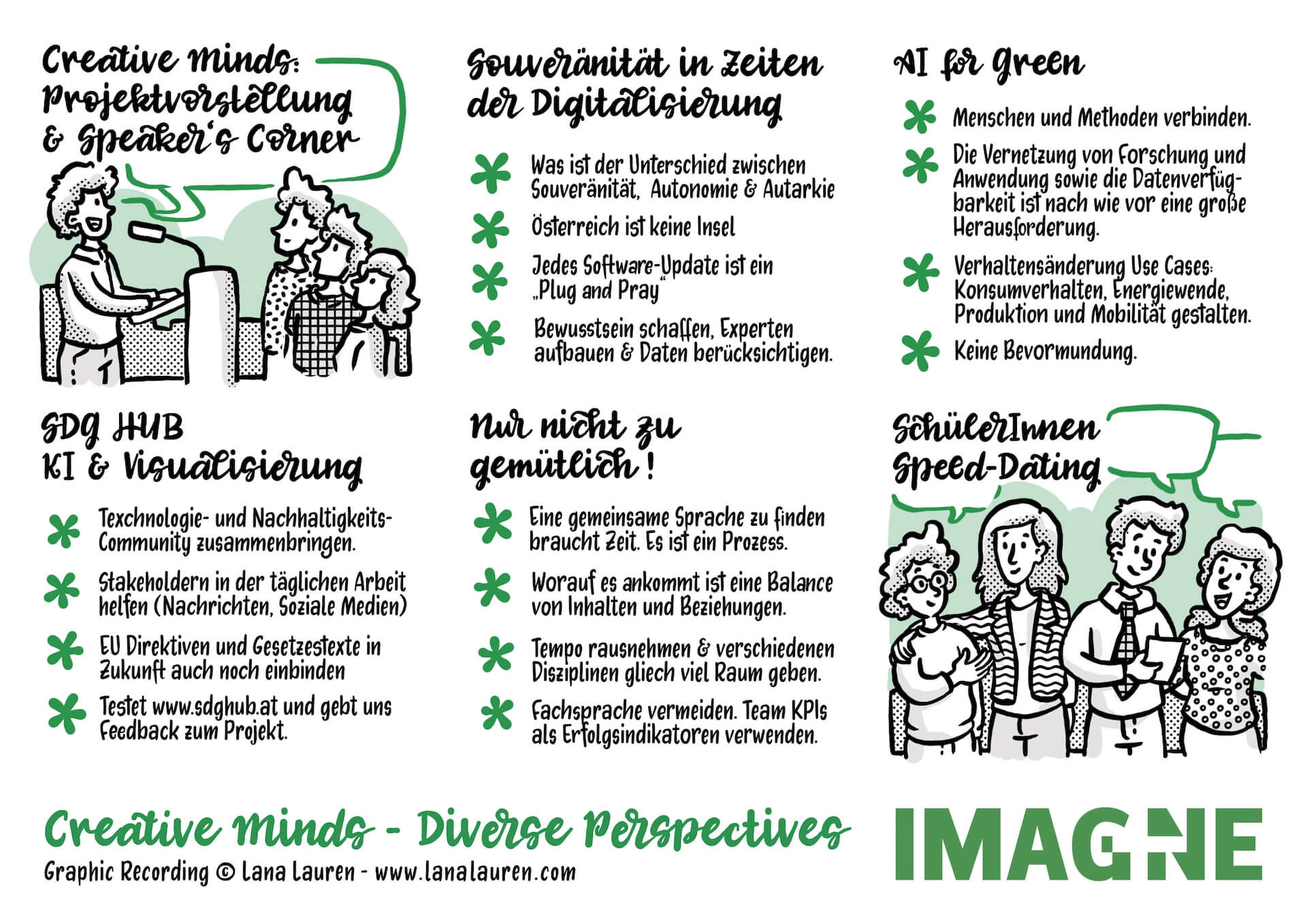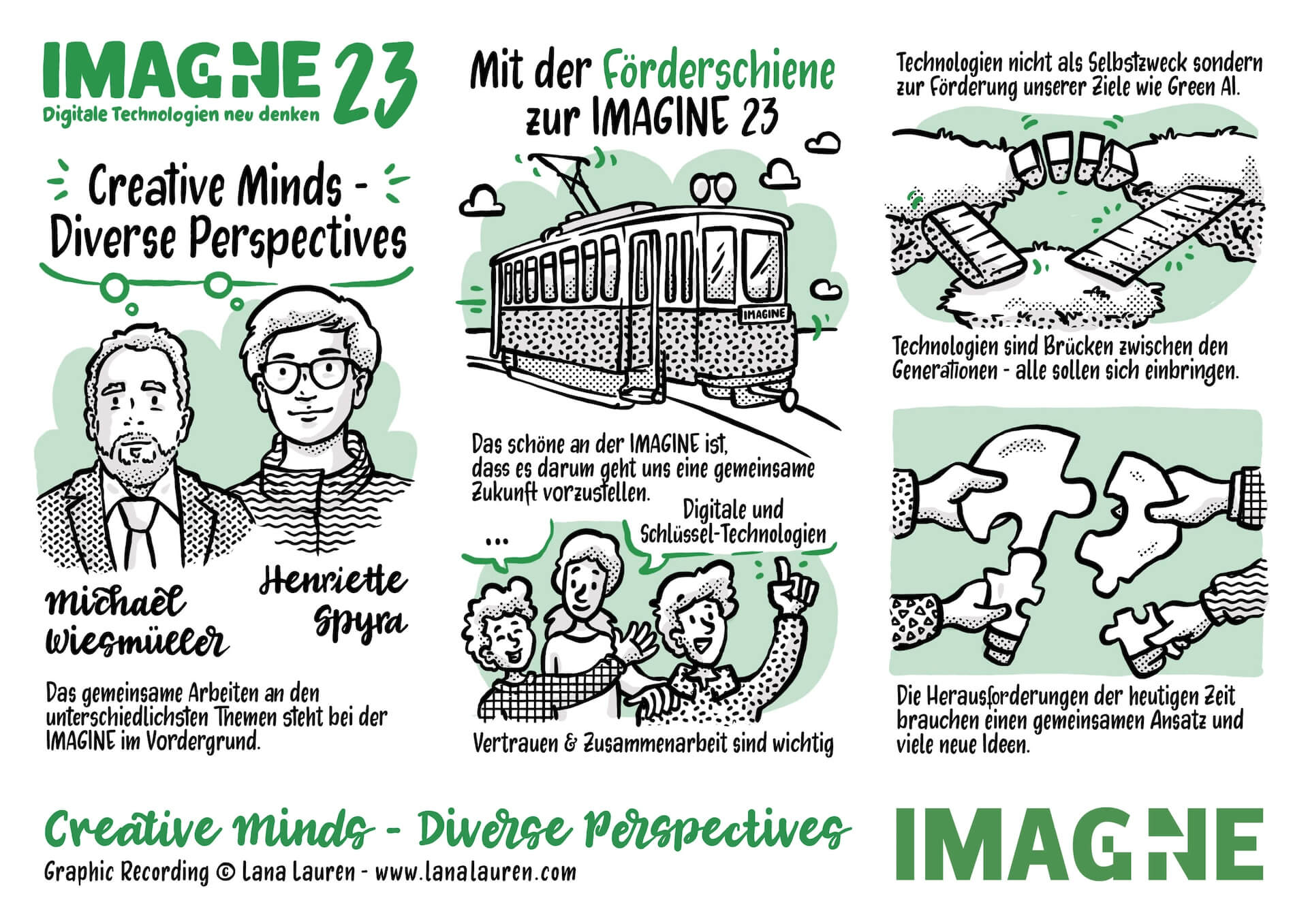 Das Bundesministerium für Klimaschutz, Umwelt, Energie, Mobilität, Innovation und Technologie (BMK) und die Österreichische Forschungsförderungsgesellschaft (FFG) laden Sie herzlich zur IMAGINE 23 unter dem Motto „creative minds – diverse perspectives“ ein. Bei dem Event rund um digitale Technologien werden spannende Projekte von Forscher:innen thematisch gebündelt präsentiert und reflektiert – und das in einer kreativen und anregenden Atmosphäre.