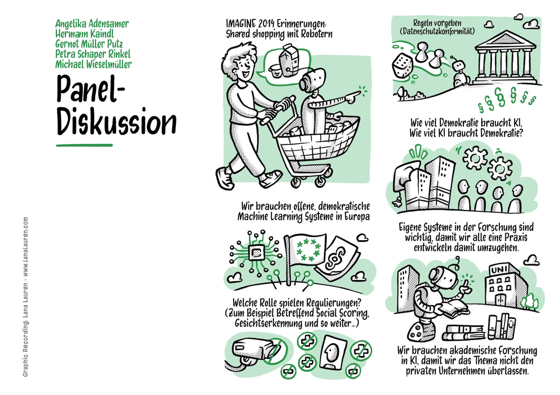 Es war mir eine große Freude, auch dieses Jahr wieder die IMAGINE, das Flagship-Event des österreichischen Technologieministeriums (BMK) und der Österreichischen Forschungsförderungsgesellschaft (FFG), als Graphic Recorderin zu begleiten. Dieses Event ist eine Plattform für die innovativsten Projekte und Forschenden im Bereich Digitaler und Schlüsseltechnologien in Österreich. Mein Graphic Recording hielt die Highlights der Veranstaltung fest – von der Eröffnung über die spannenden Keynotes bis hin zu den neuen Calls zu Themen wie Robotik, Künstliche Intelligenz und Smart Textiles.